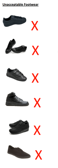 NB: If for some medical reason a child cannot wear shoes then he/she may be allowed to wear a pair of completely black trainers. In the event a doctor’s note should be provided.