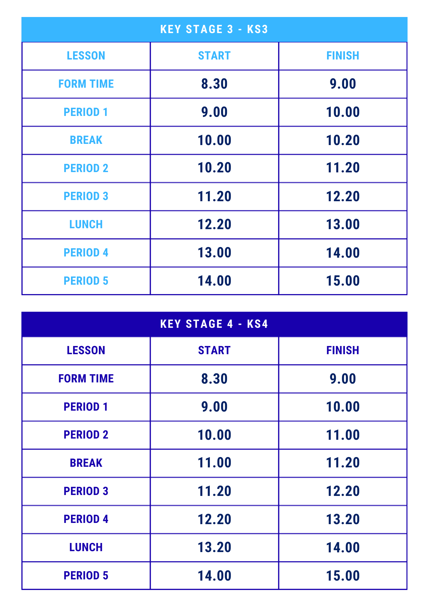 Please Note: Academy students are expected to attend a 32.5 hour week in school - detail about our school timetable can be found below